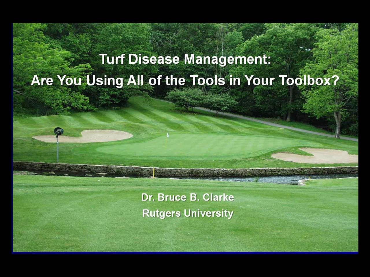 Bruce Clarke, Ph.D., of Rutgers University discusses a wide range of disease-management topics of importance to golf course superintendents, including optimizing cultural management practices to reduce plant stress and limit disease development, biological control, utilizing cultivars with improved disease resistance and maximizing chemical control strategies to enhance disease suppression on golf course turf.