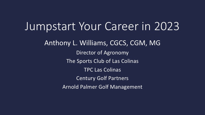 Anthony Williams, CGCS at the Sports Club at Las Colinas in Irving, Texas, offers career-development tips and advice for upcoming and experienced superintendents.