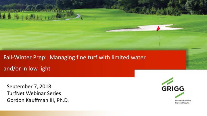 Gordon Kauffman III, Ph.D. of Brandt/Grigg, discusses how low light and minimal water affect plant physiology, reviews important cultural practices to improve turf vigor, and provides insight about new technologies and how they fit into a management strategy, including the most current science.