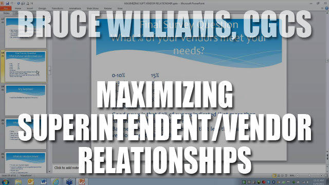 Bruce R. Williams, CGCS, of Williams Golf Consulting, will discuss the many intricate facets involved with developing and maintaining a superior working relationship with individuals who provide the golf course superintendent with the varied products and services necessary to sustain a golf course management operation. He also will discuss topics such as resources, value-adds, time management, support systems, negotiating and pricing.