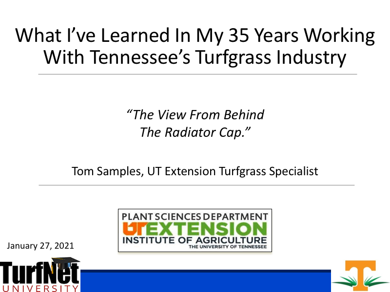 In this TurfNet University Webinar, Dr. Samples shares some of his insights and share some of what he has learned during his 35 years in the turfgrass industry. He also offers some tips on current turf management trends and issues.