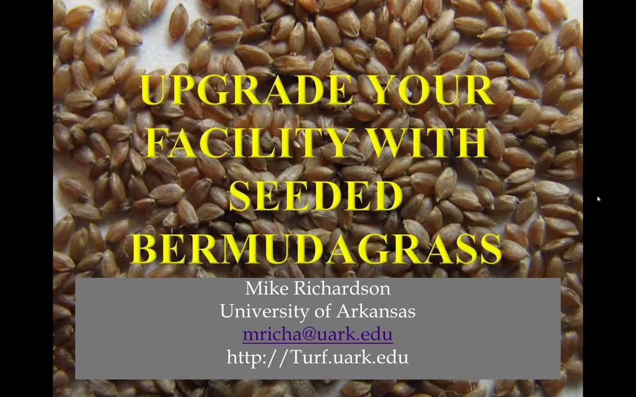 Mike Richardson, Ph.D., of the University of Arkansas will discuss how seeded Bermudagrass cultivars that are now available can perform as well as and, in some cases, better than traditional Bermudagrass hybrids. This seminar will discuss the strengths and weaknesses of various seeded Bermudagrass cultivars, best management practices for establishing these grasses and unique ways to incorporate seeded Bermudagrasses into existing management programs.